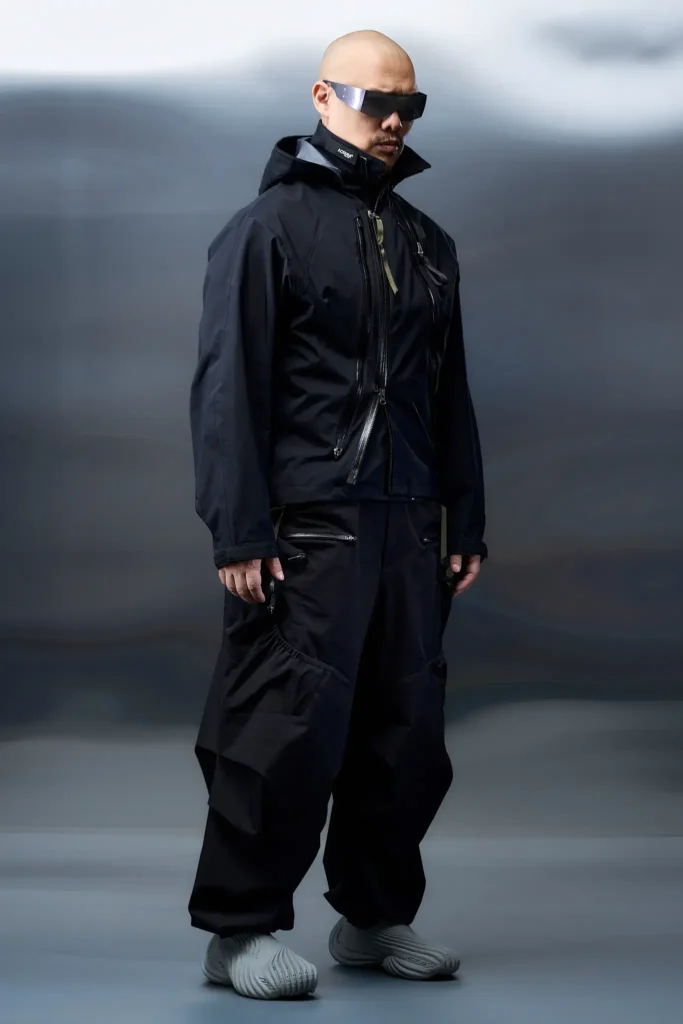 Piensa en ello como la fusión entre la ropa de montaña de alto rendimiento (The North Face, Arc’teryx) y la estética cyberpunk de Blade Runner o The Matrix.