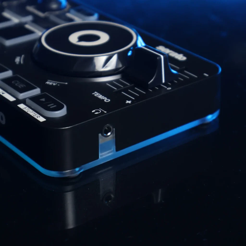 - Estética: El Hercules es una «discoteca andante». Sus luces RGB en la base reaccionan al beat de la música. ¿Es funcional para mezclar? No mucho. ¿Se ve increíble en tus historias de Instagram? Absolutamente.
